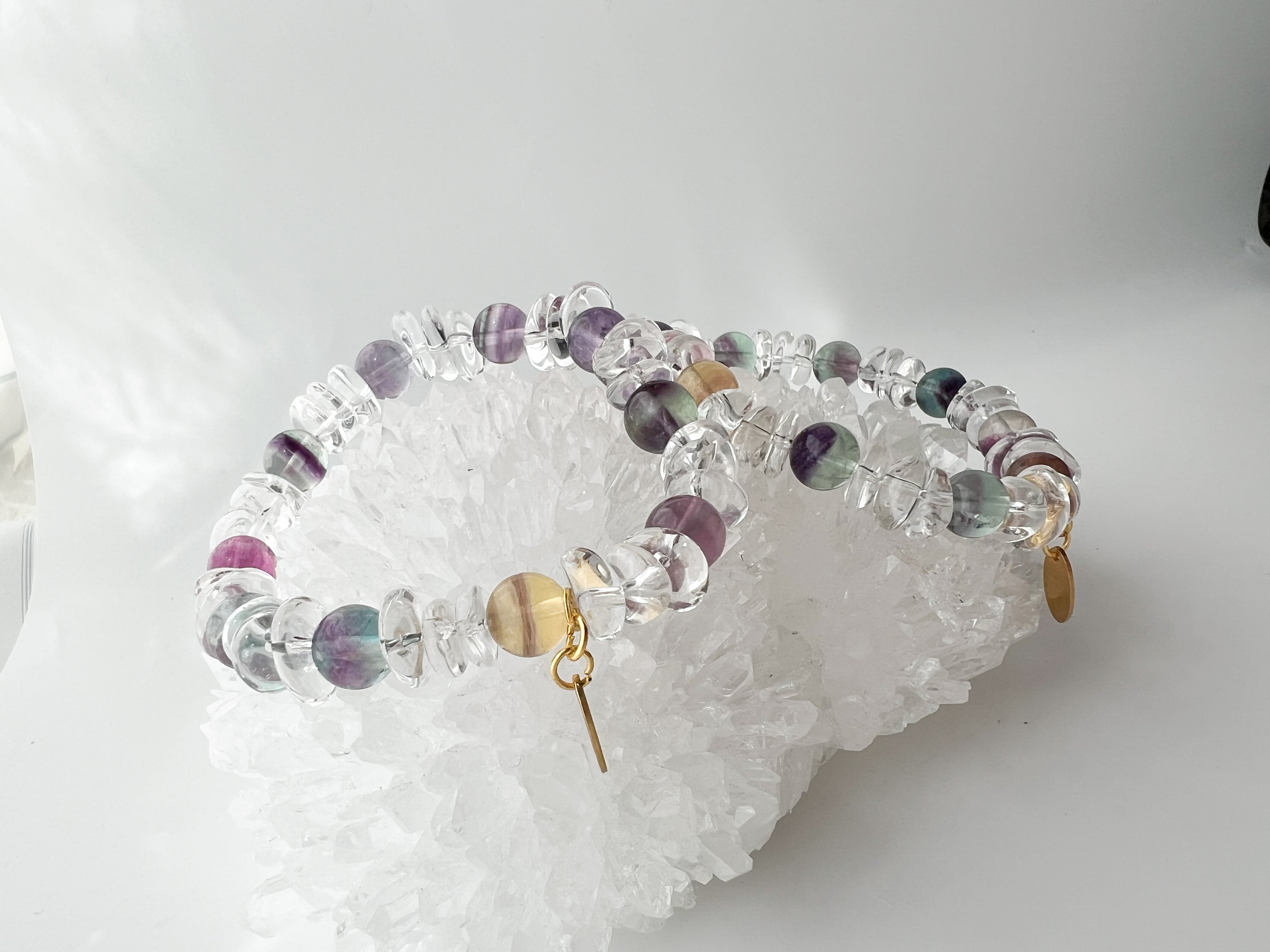 フローライト × 水晶ボタンカット のブレスレット